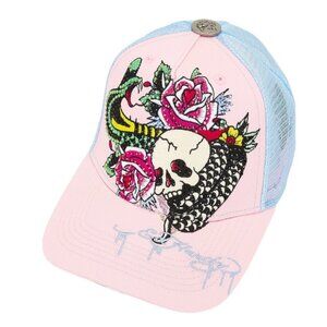 Ed Hardy Rhinestone Cobra Trucker Hat, Pink & Blue Sky, Unisex, NWT