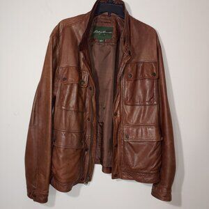 Eddie Bauer 100% Genuine Lamb Distressed Leather Jacket Size L Brown