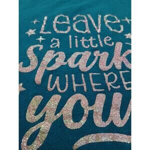 Eddie Bauer Glam T-SHIRT Plus Size XXL Blue Teal LEAVE A LITTLE SPARKLE Dazzle Glam Positive Motivation