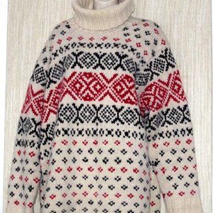 Eddie Bauer Lambswool Angora Turtleneck Winter Fair Isle Knit Pullover Size:2XL