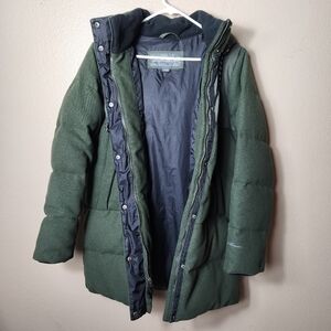Eddie Bauer Womens Olive Wool Blend Hooded Down Puffer Coat-Size S
