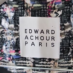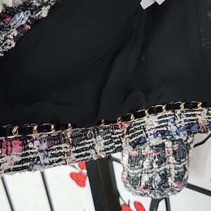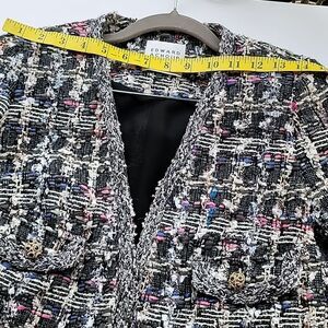 Tweed wool blend cropped open jacket detailed with two slip pockets embellished by jewelled buttons