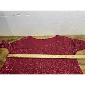 Eileen Fisher 100% Silk Red Sequin Short Sleeve Tunic Dress Size Large
