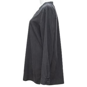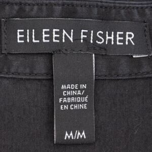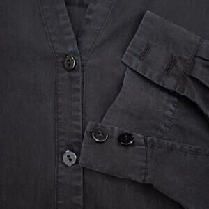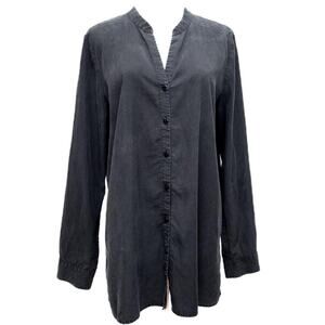 Eileen Fisher Black Silky V-Neck Button Down Shirt Size Medium