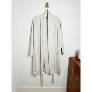 Eileen Fisher Cream Light Gray Trench Coat Jacket Shawl Collar Tie Waisted XS