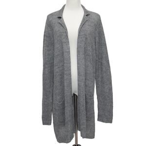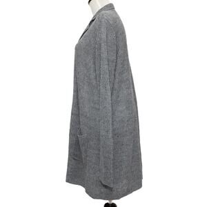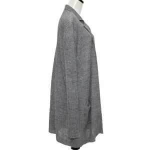 Eileen Fisher Long Gray Linen Notched Collar Cardigan Size Large