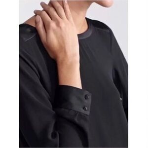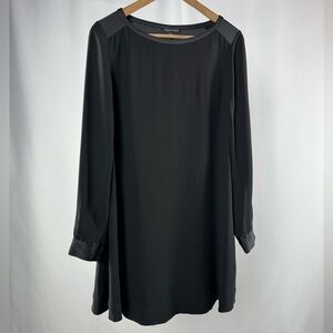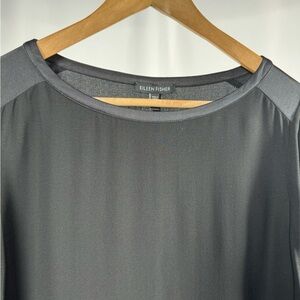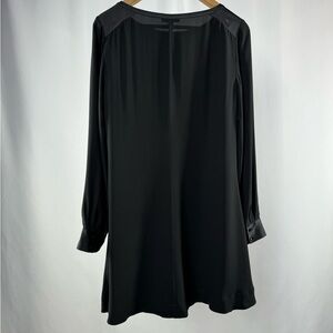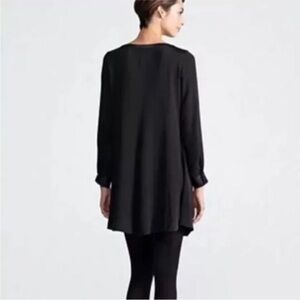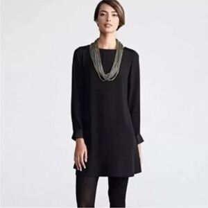 Eileen Fisher Long Sleeve Silk Bateau Neck Tunic Dress in Black Size Extra Small
