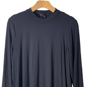 Eileen Fisher Medium Black Stretch Viscose High Slit Mock Neck Midi Tunic