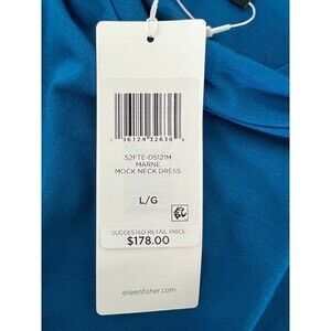 Eileen Fisher Mock Neck Tie Waist Sleeveless Dress Marine Blue $178 - L NWT