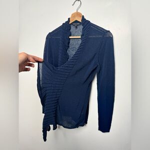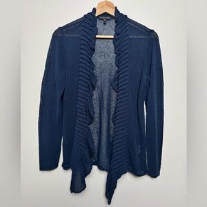 Eileen Fisher Navy Blue Linen Blend Cardigan Sweater Small S knitted ruffles