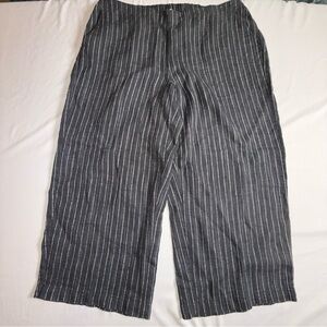 Eileen Fisher Organic Linen Crop Ankle Wide Leg Pants Women's XL Beach Strips