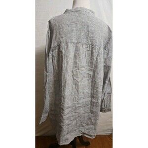 Eileen Fisher Size XL Shirt Crinkled Organic Linen Stripe Mandarin Collar Long