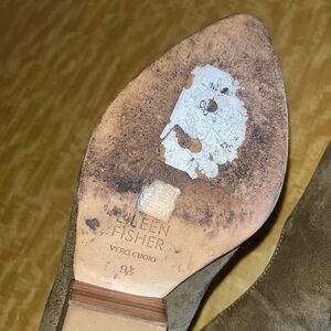 In preowned condition, smoke and pet free home. Forest green color with wood block heel. Suede, gorgeous classy style. Bottom is a bit dirty. Will do best to clean up before shipping.  Final price.