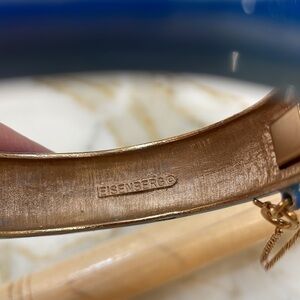 Eisenberg Enamels Hand Painted Hinged Blues & Gold Bracelet—Hinged & has safety chain. Beautiful!! New with tags.