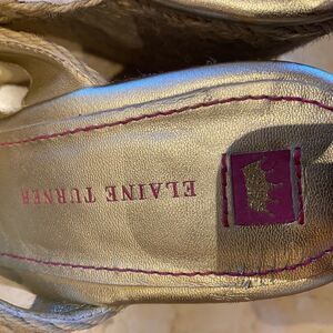 Elaine Turner platform sandal in size 10. Gold buckle and tan leather and Woven straps. Size 10