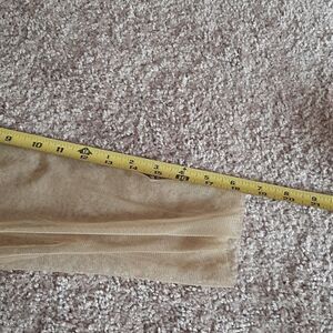 Elaris beautiful vintage white cardigan with tan tulle sleeves, ribbon flowers sewn on the front, delicate buttons, and lace back.