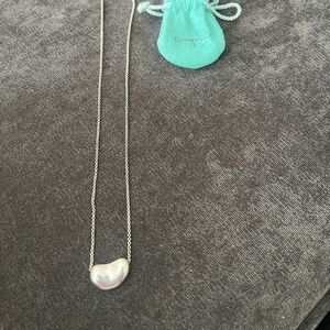 Bean® design Pendant,The bean represents the origin of all things. Pendant in sterling silver, 18 mm wide. On a 18" chain. Original designs copyrighted by the Nando and Elsa Peretti Foundation. The pendant is in good condition, the chain is a little tarnished