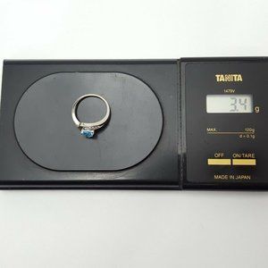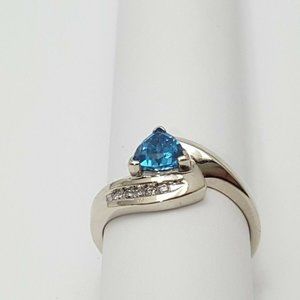 Elegant 10K Karat Solid White Gold Blue Topaz & Diamond Ring - Size 7 - Nice!