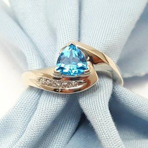 Elegant 10K Karat Solid White Gold Blue Topaz & Diamond Ring