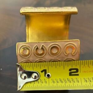This chic metal and enamel "COCO" cuff bracelet is an amazing addition to any closet! The enamel has cracked and is missing on the front of the bracelet, which I have shown in the pictures, this flaw is reflected in the price. This cuff is elegant and fashionable and has the authentication mark shown inside the bracelet. Please message me with any questions or if you want additional photos. Please see photos for measurements.