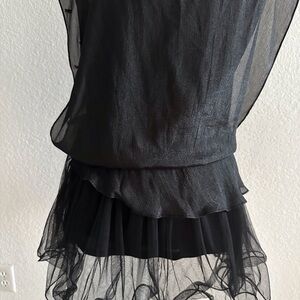 •   Hemline: Sheer layered hem with a wavy finish for a feminine, dressy look.