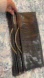 This sophisticated black clutch features sleek gold accents, perfect for any occasion. Its elegant design makes it a versatile accessory for your wardrobe.