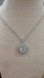 This stunning silver pendant necklace features a dazzling centerpiece surrounded by sparkling accents. Perfect for adding a touch of elegance to any outfit.