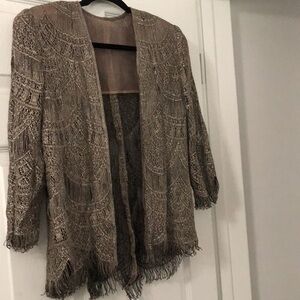 Elegant Dress Cover Up - cropped coat size medium. Very elegant and intricate cover up, looks stunning over a dress. It is a deep gold color with metallic accents and has shoulder pads for structure