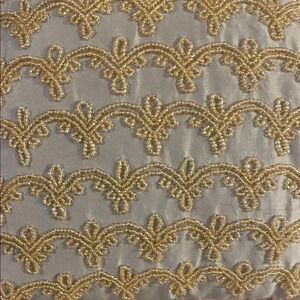 Decorative pillow with intricate gold embroidery. Features tassels on each corner. Adds a touch of elegance to any room.