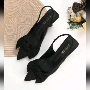Elegant High Heel Pumps With Bow Detail, Pointed Toe Stiletto Heels
