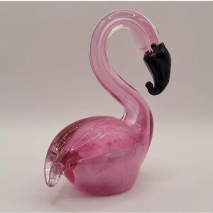 This elegant pink glass flamingo sculpture adds a touch of sophistication to any home decor. Its graceful design and vibrant color make it a standout piece.