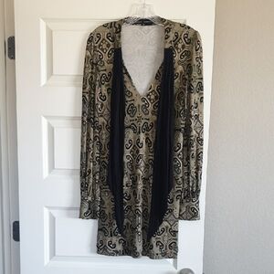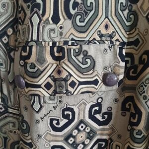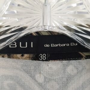Step out in style with this elegant vintage designer Barbara Bui black tan and green patterned dress. 💯 % silk. Perfect for any occasion, this dress offers a chic and sophisticated look.