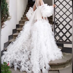 Stunning white bridal robe with flowing ruffles. Perfect for a wedding day or photos.