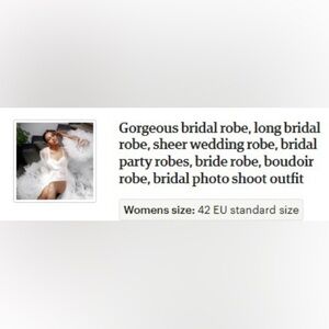 I got this robe custom made and showed the first photo as inspiration. The robe looked identical to the photos attached. Will fit almost any size. Comes with a small sheet belt to close in the front. Completely sheer- doesn’t come with slip.