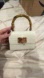 This chic white mini handbag features a stylish croc-embossed design and a unique bamboo handle. Perfect for adding a touch of elegance to any outfit. The mini bag is in over all great condition just a small marking on the bottom as shown in pictures and video. Will not take away from the cutie bag.  Pet and smoke free home. All sales are final.