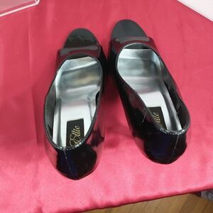 Step out in style with these elegant black peep-toe heels. Perfect for any occasion, these shoes offer both comfort and sophistication.