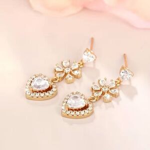 🔅🆕🔅 Elegant Heart Flower Simulated Diamonds Dangle Earrings✨
