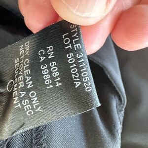 Elie Tahari black techno fiber dress pants size 6. Polyester/elastane. The fabric and the fit are very flattering and slimming.  Style 31110520. Front zip pockets and piped pack pockets. The length is 41 1/2 inches. The waist is 30 inches. The front rise is 10 inches. The hip is 38 inches. And the leg bottom is 20 inches.