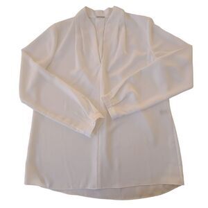 Elie Tahari Soft White Split Neckline Long Sleeve Blouse Size M