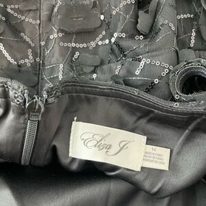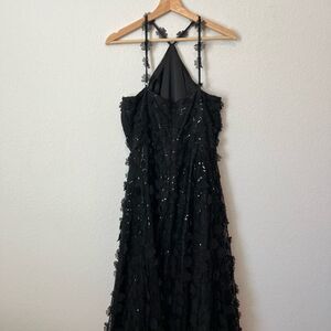 Eliza J Black 3D Floating Flow Floral Sequin Halter Ballgown Dress Women's 14