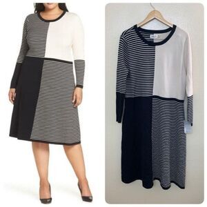 Eliza J Placed Stripe Midi Sweater Dress Plus Size 3X Ivory Black A Line