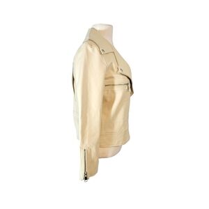Elizabeth and James Cream Faux Leather Asymmetric Zip Moto Jacket