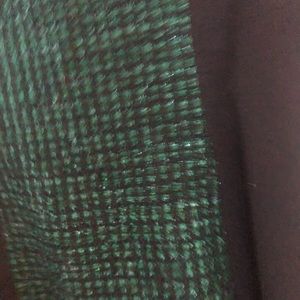 Ellen Tracy size 10 green metallic thread black faux leather trim back