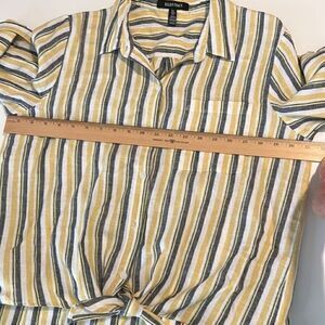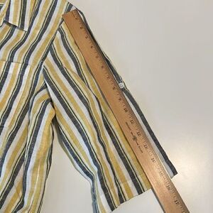 Ellen Tracy Linen Front Tie Button Down Collar Stripe Top Women's Size L