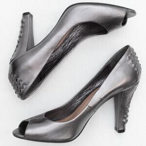 Elliott Lucca Metallic Pewter Gray Leather Braided Heels Size 6
