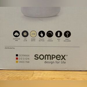 Must have unique hanging lantern elo lantern by DESIGNER B*X. German designer Sompex design for life. Iconic bottle shape design and hanging hook allows the elo light to fit in effortlessly on the table at gatherings or to hang above you in the trees or on a hook. Gives of a warm, soothing ambiance. Elo is weatherproof so can be used inside or out. USB chargeable. Cord included. You can adjust the light intensity with the touch of a finger. Brand new in box.