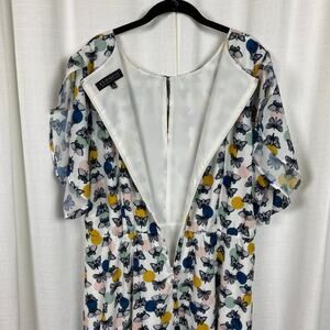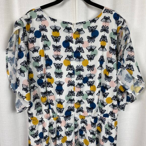 Eloquii White Dot Butterfly Print Flutter Sleeve Midi Dress Sz.22W