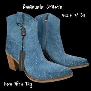 Emanuele Crasto Made In Italy Suede Studded Cowboy Boots Size 39 EU New With Tag