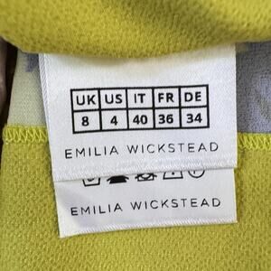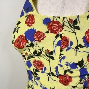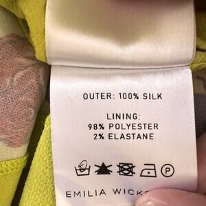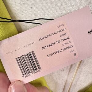 This stunning Emilia Wickstead ‘Riona’ dress from the RS20 collection is crafted in luxurious 100% silk Crepe de Chine, featuring the romantic Scattered Roses print in vibrant red and blue florals on a sunny yellow background. The structured bodice has a unique sweetheart-style neckline, while the fitted waist and flared skirt create a flattering silhouette. Fully lined for comfort and finished with a concealed back zip. Perfect for garden parties, weddings, or any elegant occasion.