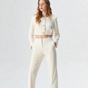 Emilio Pucci Crop Alabaster Silk Wool blend 2 Piec suit